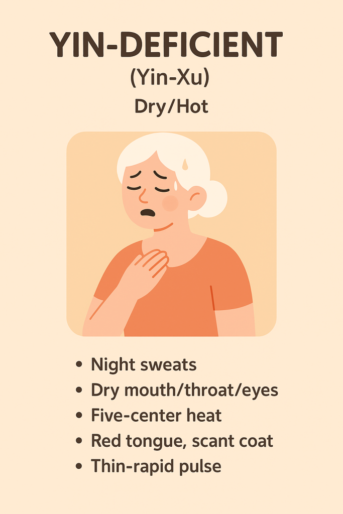 Yin-Deficient — “Dry Mouth/Throat, Warm Palms/Soles” (阴虚体质)
